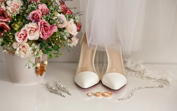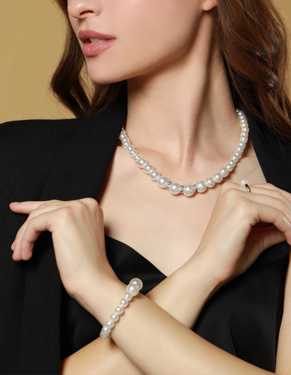 La parure de la mariée, composée d’un collier, de boucles d’oreilles et parfois d’un bracelet, est sélectionnée pour s’harmoniser avec la robe et la coiffure. Les perles apportent douceur, les cristaux un éclat discret et les diamants une brillance intemporelle. L’objectif est de magnifier l’ensemble sans surcharge, pour un rendu d’une élégance raffinée.
