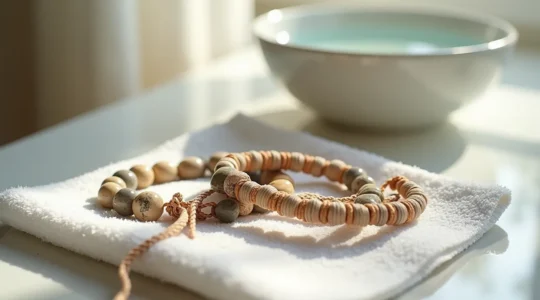 Pour les éléments textiles, un nettoyage doux occasionnel prolonge la durée de vie. Un coton-tige légèrement humidifié d’eau savonneuse permet de nettoyer les cordons sans immersion totale. Laissez sécher complètement à plat avant de ranger, car l’humidité résiduelle favorise le développement de moisissures sur les fibres naturelles.