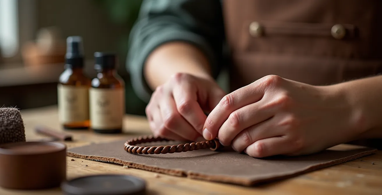 Ce bracelet en cuir tressé que vous venez de vous offrir, il a de l’allure. Le grain est beau, l’odeur est là. Mais au poignet, c’est une autre histoire. Il est raide, presque tranchant. Il vous irrite la peau et laisse des marques rouges. La première impulsion, c’est de vouloir le « casser », le tordre dans tous les sens, voire de le passer sous l’eau chaude en se disant qu’il va bien finir par céder. C’est l’erreur la plus commune et la plus destructrice. Un cuir de qualité, surtout tressé, n’est pas un bout de plastique qu’on peut maltraiter. C’est une matière vivante, composée de milliers de fibres entrelacées.