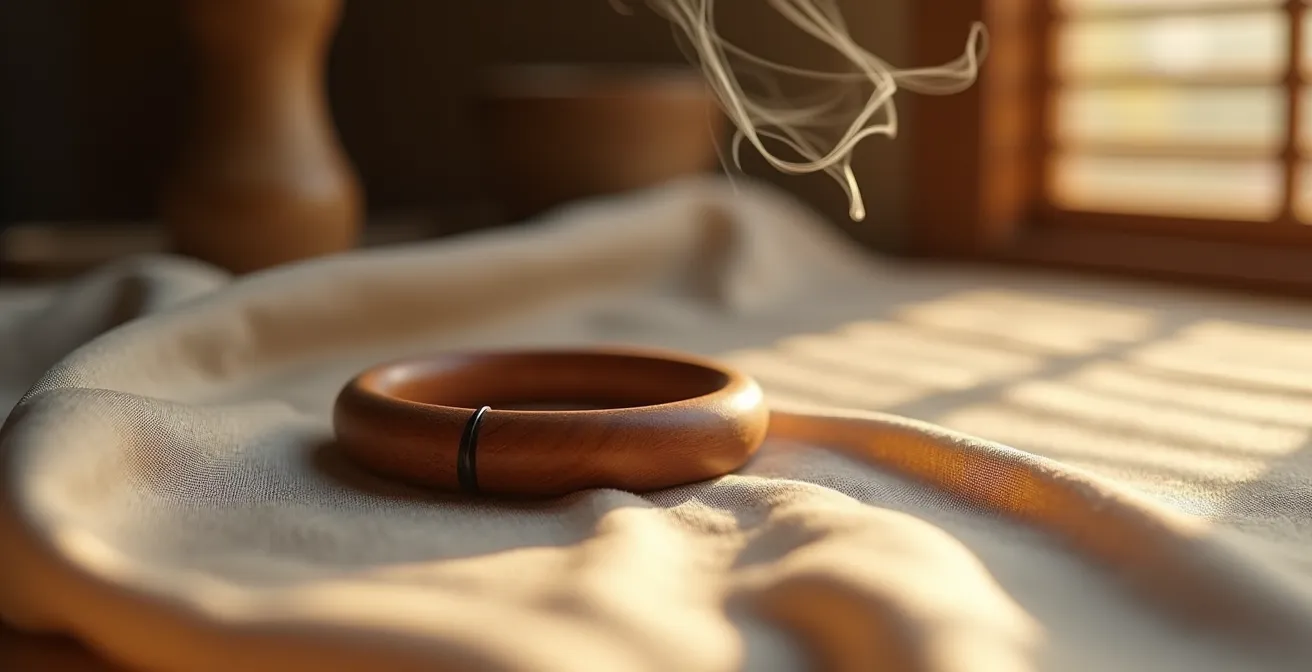 Le parfum de votre bracelet en santal ne s’est pas évanoui, il s’est simplement endormi. La clé n’est pas de le saturer d’huile, mais de comprendre comment le bois respire pour le réveiller.